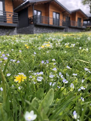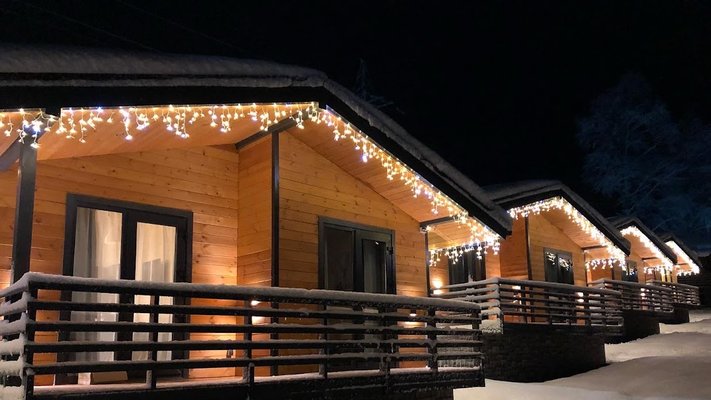 На территории отеля есть баня на дровах, чан и отапливаемые беседки. Рядом с базой отдыха расположены пешеходные маршруты, включая скалу Карча-Тёбе.