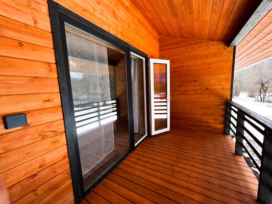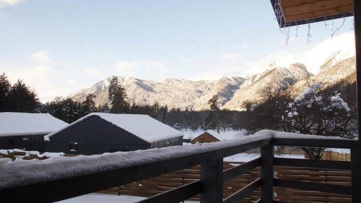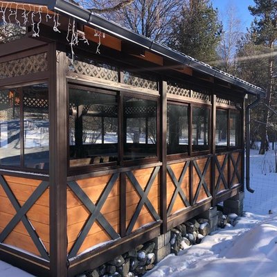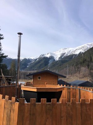 Жаркая парная на горном воздухе станет прекрасным завершением дня после поездки на экскурсии или катания на лыжах. Здесь добавили изюминку в Ваш отдых и построили баню с панорамным остеклением и живописным видом на горы Кавказа!