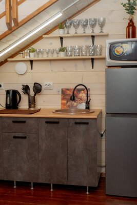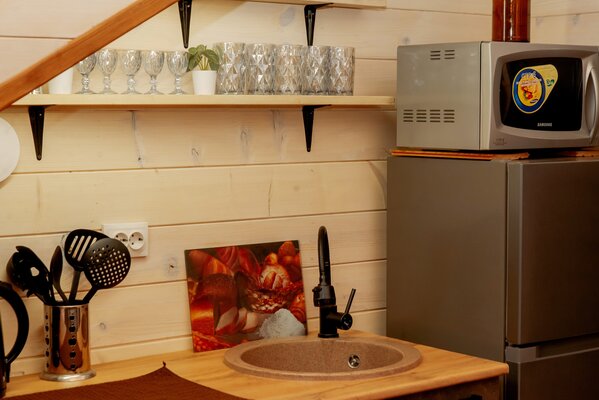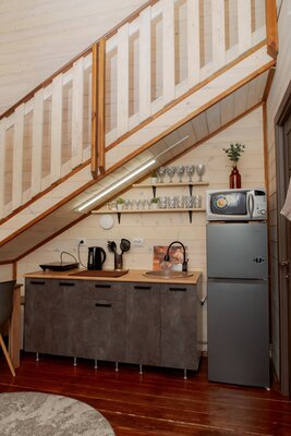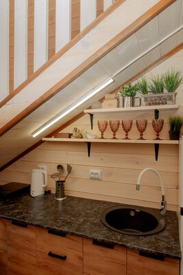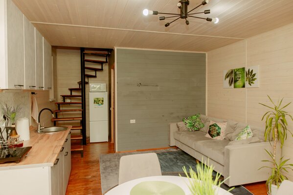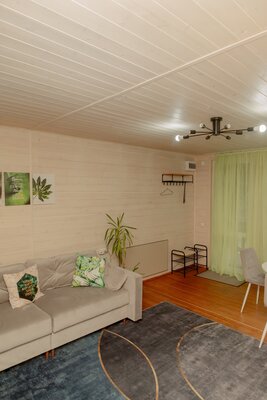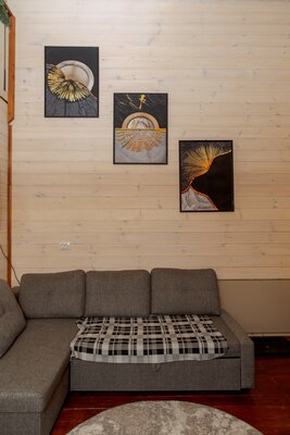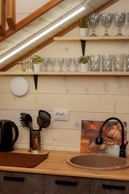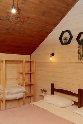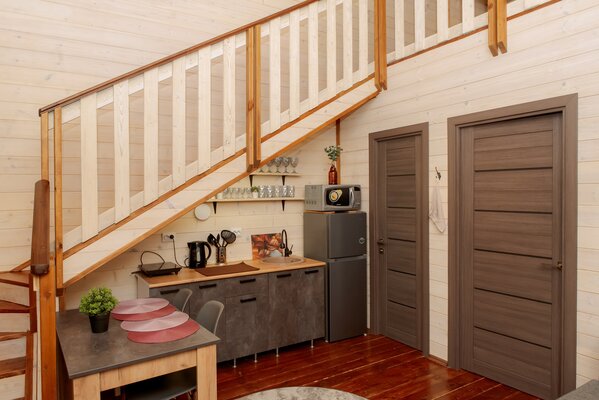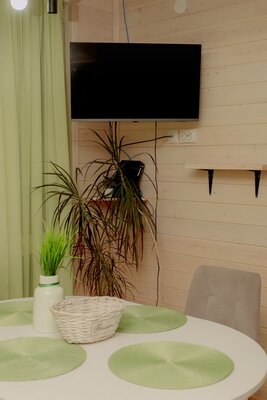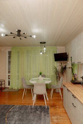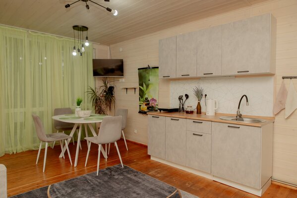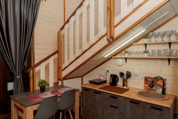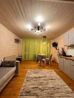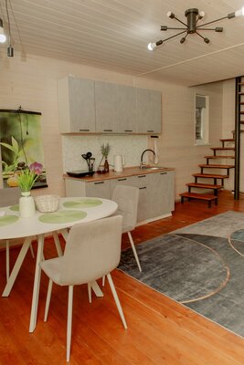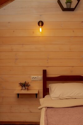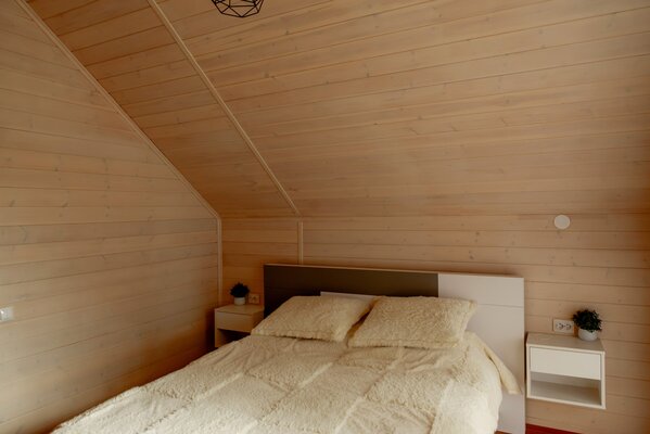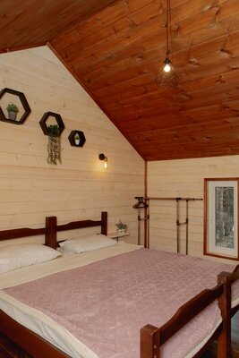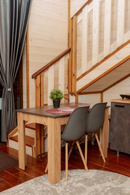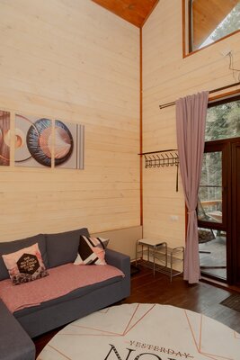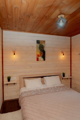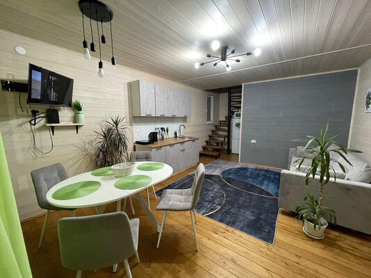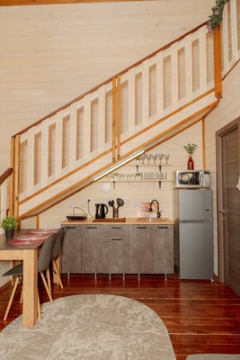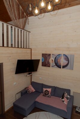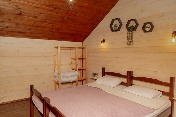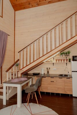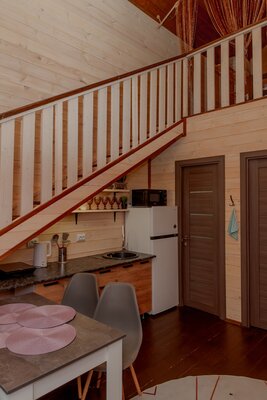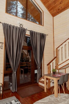 Внутри вас ждет уютная атмосфера и всё необходимое для комфортного отдыха: просторная гостиная-столовая, идеально подходящая для семейных ужинов и дружеских встреч; современная кухня с мангалом; две уютные спальни с индивидуальным стилем; и комфортабельная ванная комната.