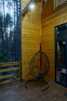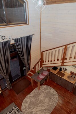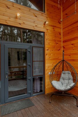 Собранный из экологичных материалов, дом гармонично вписывается в окружающий ландшафт. Просторная терраса — идеальное место для спокойных вечеров у костра, созерцания заката и наслаждения тишиной.