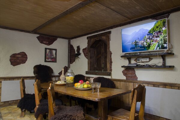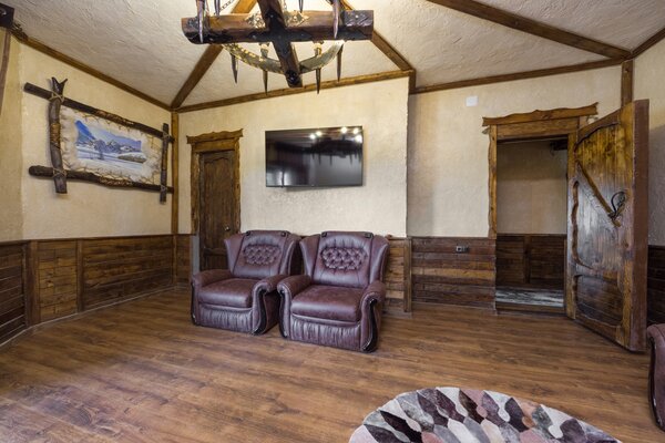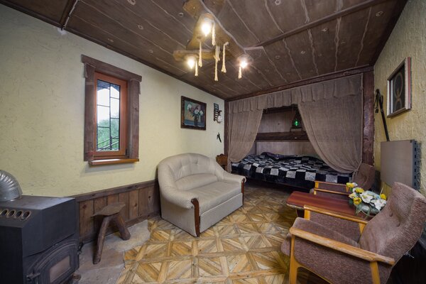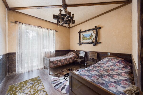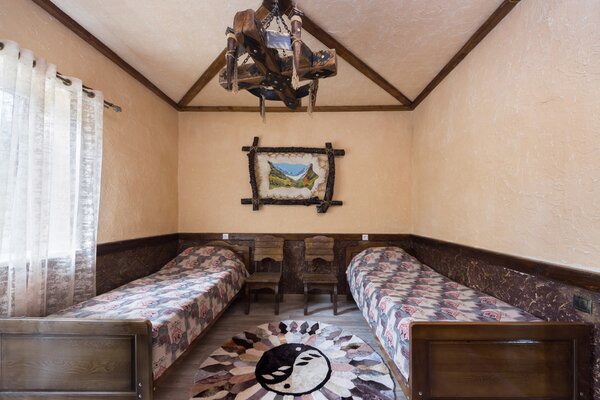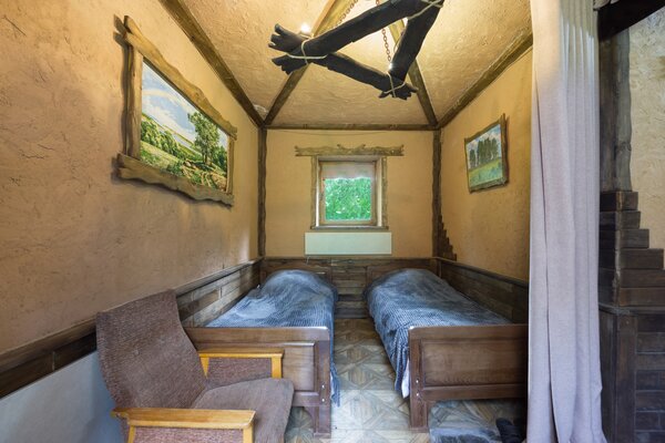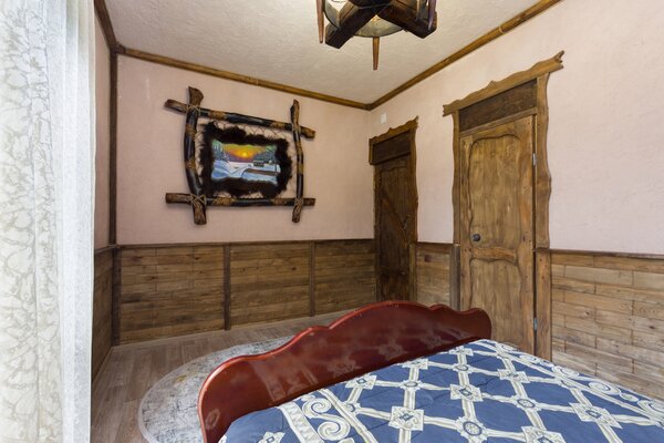 Выберите из уютных гостевых домов, каждый из которых предлагает различные варианты размещения. Нижний этаж располагает тремя восемью номерами, а также кухней и санитарным узлом. Верхний этаж предлагает два двухместных, трехместный и четырехместный номер, каждый из которых оснащен собственной ванной комнатой. Вы даже можете арендовать весь дом! Для любителей уединения доступен четырехместный охотничий домик с кухней, ванной комнатой и изолированной спальней.