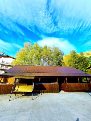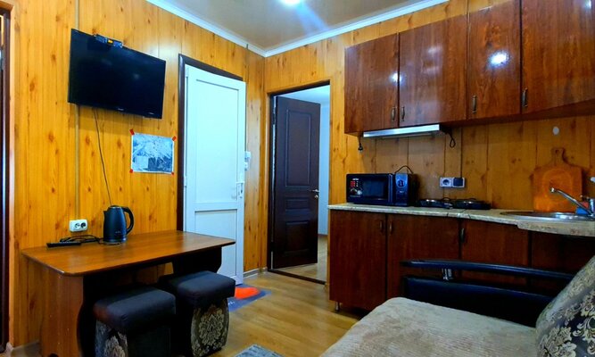 Каждый домик оснащен всем необходимым для беззаботного отдыха: отоплением, удобной мебелью, современной канализацией и полностью оборудованной кухней. Из окон открываются захватывающие дух панорамы Главного Кавказского хребта.