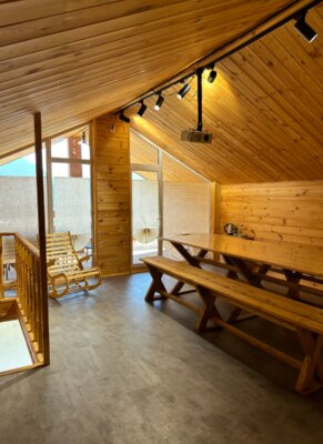 К вашим услугам два просторных коттеджа на 8 и 10 человек, а также два уютных номера, рассчитанных на 2 гостя. Такое разнообразие вариантов размещения гарантирует каждому гостю комфорт и уединение. Интерьеры домов отличаются особым вниманием к деталям: мебель ручной работы и элементы декора, созданные местными мастерами из натуральных материалов, создают неповторимую атмосферу уюта и аутентичности.