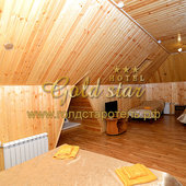 Отель «GOLD STAR» открыл свои двери для гостей курорта «Домбай» в 2015 году. Номерной фонд отеля состоит из двадцати комфортабельных номеров. На территории отеля имеется автостоянка под видеонаблюдением, а также русская баня с купелью, мангал, бесплатный доступ в Интернет по средствам Wi-Fi. В шаговой доступности находятся магазины, Сбербанк, канатные дороги.