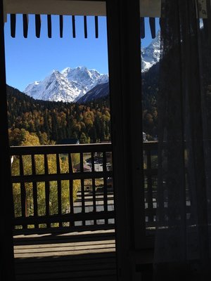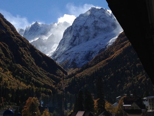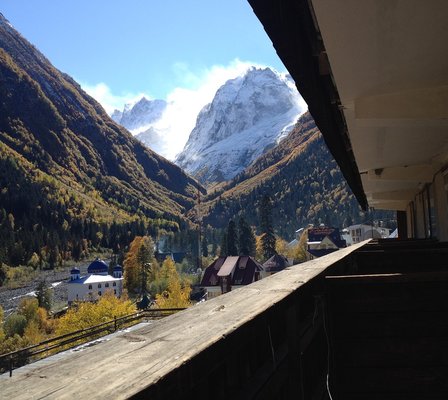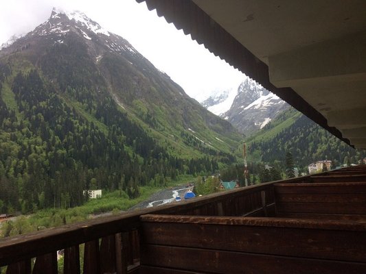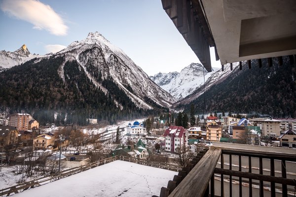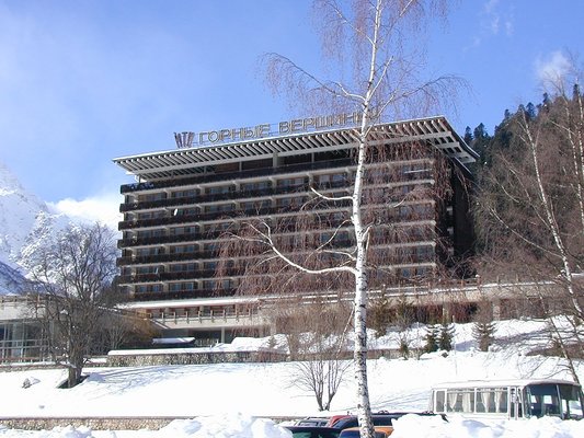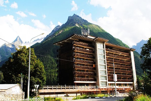 Гостиница «Горные Вершины» оправдывает свое название местоположением – она находится в центре курорта Домбай и окружена со всех сторон живописными склонами предгорий и заснеженными круглый год вершинами.