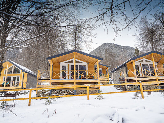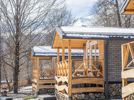В живописном селе Архыз, на базе отдыха «Горный приют Base Camp», вас ждет полное единение с природой. Уютные коттеджи, утопающие в зелени леса, предлагают идеальный отдых от городской суеты. Панорамные окна и просторные террасы современных коттеджей открывают захватывающие виды на горные пейзажи, а продуманный до мелочей интерьер создает атмосферу уюта и комфорта.