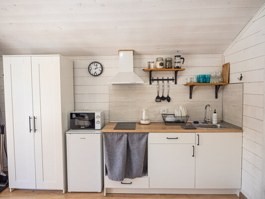 Каждый дом оборудован собственным мангалом с необходимыми принадлежностями. Гости могут устроить барбекю и насладиться временем в кругу близких, создавая незабываемые моменты на свежем воздухе.