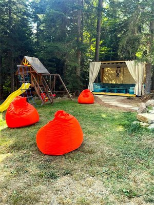 Ваши дети весело проведут время, катаясь с горки или на качелях в детской зоне отеля «ГОРЫ Вилладж».