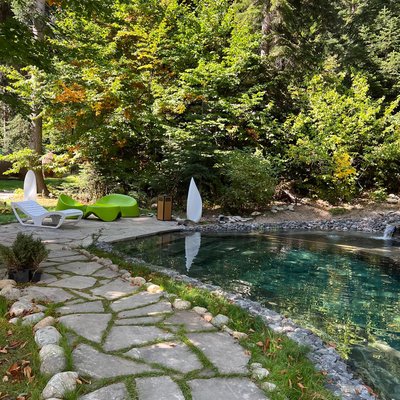 После бани расслабьтесь, сидя у пруда в удобном шезлонге с чашкой ароматного горного чая, заботливо приготовленного персоналом «ГОРЫ Village».
