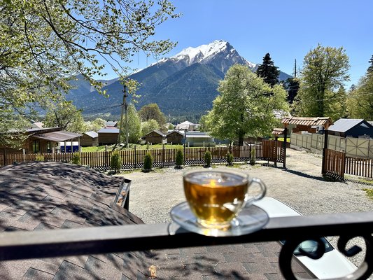 Гости «Атам» считают прекрасным началом дня — вкусный завтрак на террасе с великолепным видом на гору Красная.