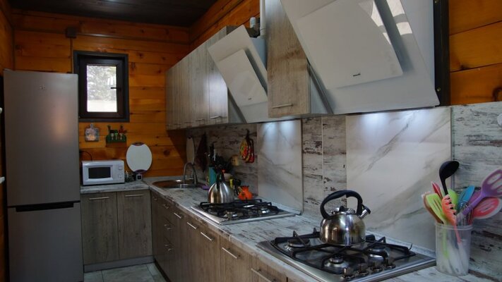 К вашим услугам полностью оборудованная общая кухня с камином и всем необходимым для приготовления пищи. Для гостей на автомобиле предусмотрена бесплатная парковка и удобное помещение для хранения спортивного инвентаря и сушки одежды.