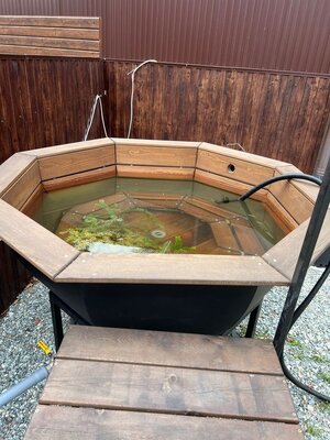 Сибирский чан с подогревом на дровах и удобным столиком для напитков.