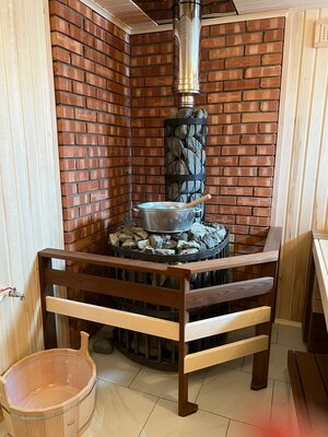 Баня на дровах, веники, предбанник, кухонный уголок, есть всё необходимое.