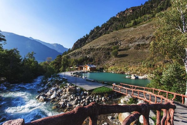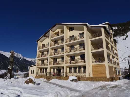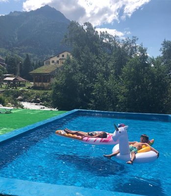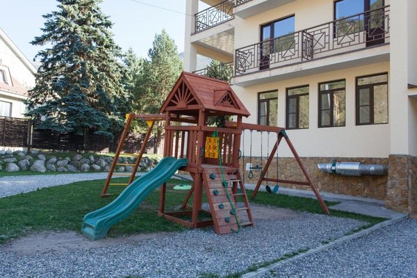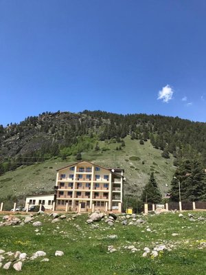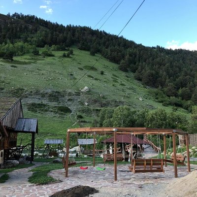 Здравствуйте! Очень хочу поделиться с вами своими эмоциями про отель "YetiHouse", находящийся в Теберде, недалеко от горно-лыжного курорта Домбай. В это замечательное место мы ездили уже второй раз. Расположен этот гостиничный комплекс вокруг гор, поэтому из номеров с балконами открываются красивые пейзажи. Территория комплекса большая. На ней находятся качели, горки, беседки, "шале", бассейн, озеро, баня и много других интересных...