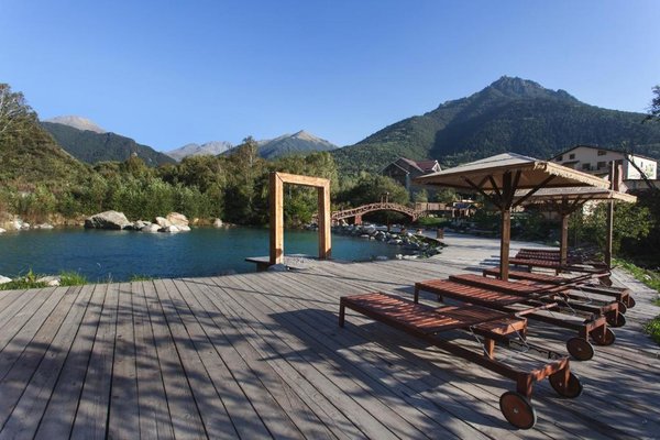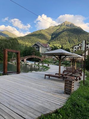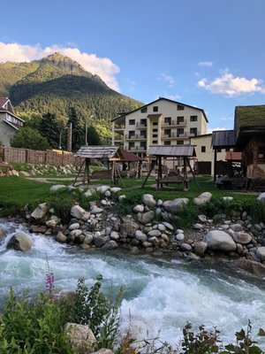 рядом горы, родник на территории, большой спектр слуг и развлечений, вкусная кухня, уютно, отличный хамам.