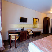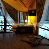 К Вашим услугам: 15 комфортабельных номеров. В отеле имеется бар, ресторан с изысканной кухней, русская и финская баня. В близи отеля находятся канатные дороги и горнолыжные трассы.
