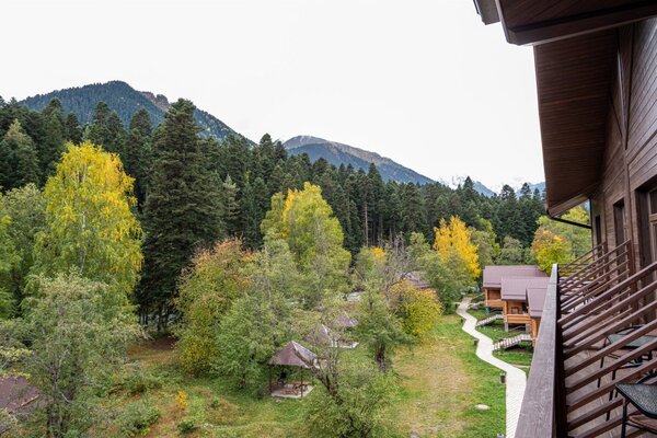 Шале «Китеж» расположено в живописном курортном селе Архыз, всего в нескольких минутах ходьбы от его центра.