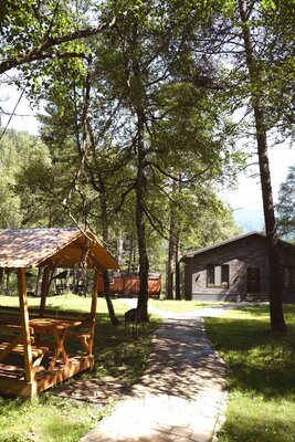 Уютная атмосфера зала, способного вместить до 95 человек, создает идеальные условия для проведения различных торжеств: банкетов, свадеб и корпоративных мероприятий. Вокруг - горные вершины, дикая природа, от которой захватывает дух. Воздух здесь просто фантастический. Кажется, что оказался в другом - волшебном - мире