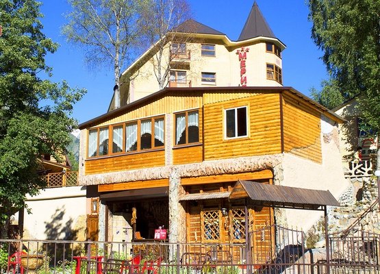 Отель «Меридиан» – современное, комфортабельное пятиэтажное здание, расположенное в самом живописном месте знаменитого горнолыжного курорта Домбай. Отель расположен на месте слияния двух горных рек – Алибек и Аманауз, в центре домбайской поляны. Из окон отеля взорам гостей открывается прекрасный вид на панораму Главного Кавказского хребта и вершины гор Белалакая и Сулахат, на белоснежные вековые ледники и бурную реку, обрамленную хвойными деревьями.