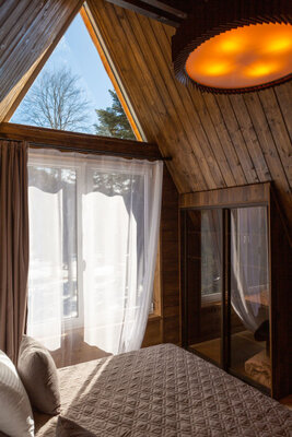 Насладитесь исключительным сервисом и незабываемыми впечатлениями на обширной территории в 34 гектара. Каждая дизайнерская сфера оснащена просторной террасой (70 м²), панорамным окном, уютным пеллетным камином, комфортными креслами, вторым уровнем и всеми необходимыми удобствами.