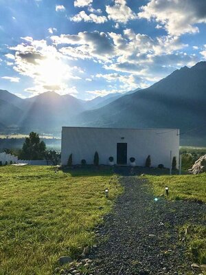 Аэропорт Минеральные Воды, ж/д до Кисловодска, далее трансфер около 2,5 часов на авто.