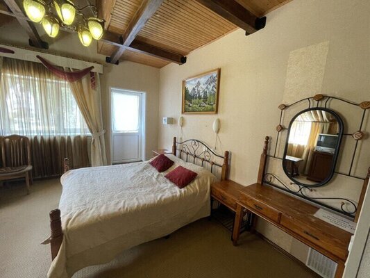 Отель расположен в самом сердце Домбая, в непосредственной близости к канатной дороге. Подальше располагается лыжная трасса. За отелем — Домбайская поляна со снежными пиками. Здесь есть все, что нужно для отдыха после катания на лыжах и прогулок.