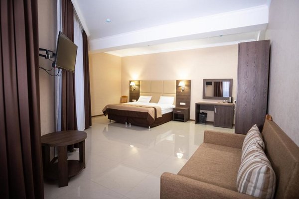 В каждом номере гостевого дома имеется платяной шкаф, телевизор и собственная ванная комната. По утрам в гостевом доме «Орлиное гнездо Архыз» сервируют халяльный завтрак.
