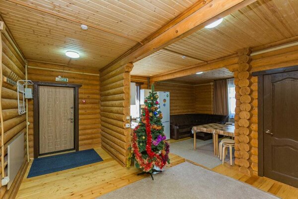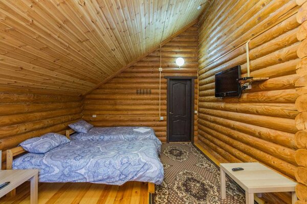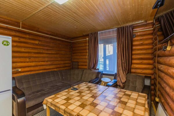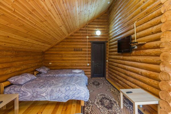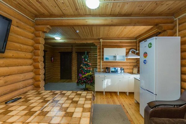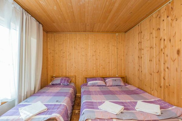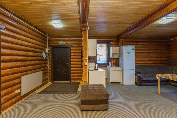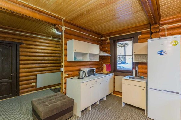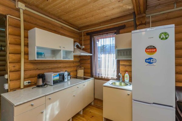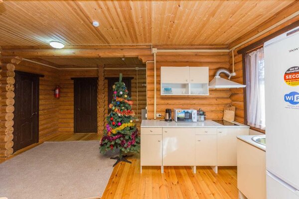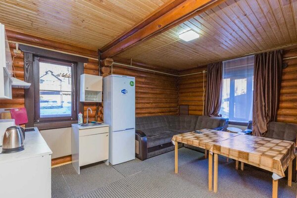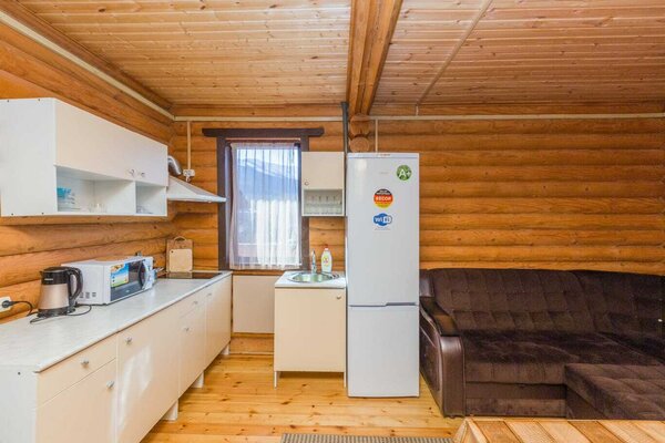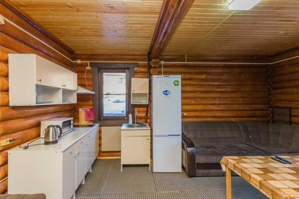 Для больших компаний идеально подойдут просторные двухэтажные апартаменты, выполненные из натурального сруба. Эти отдельно стоящие дома включают 4 изолированные спальни, два санузла и полностью оборудованную кухню с плитой, микроволновой печью, холодильником, электрическим чайником и всей необходимой посудой, что позволяет гостям самостоятельно организовать питание.