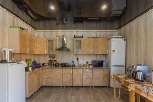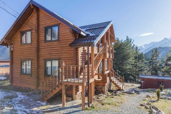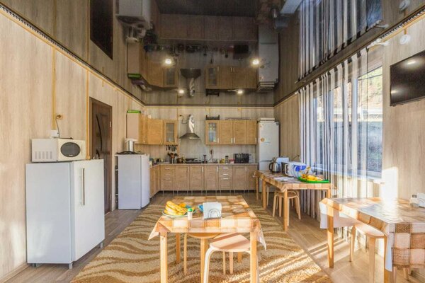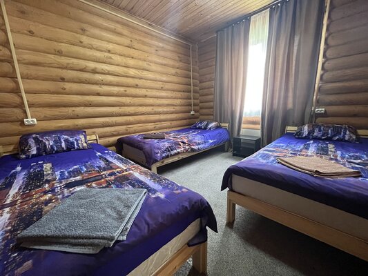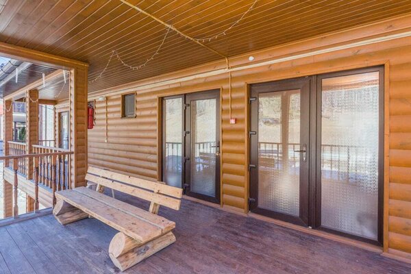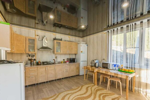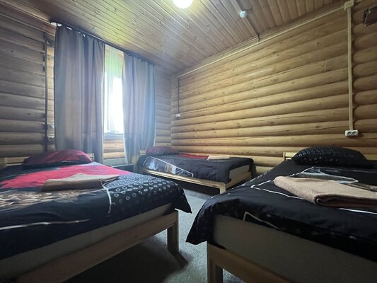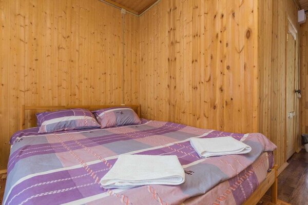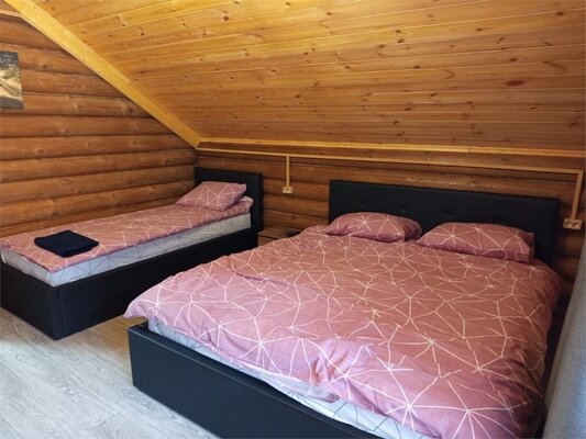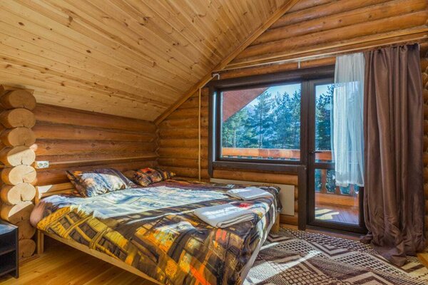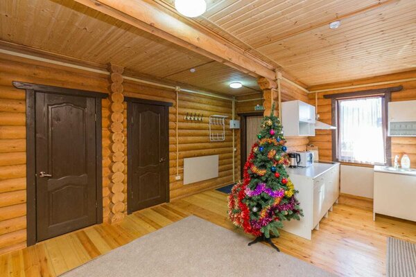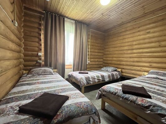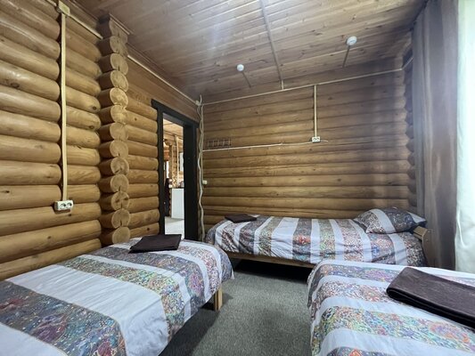 Для больших компаний идеально подойдут просторные двухэтажные апартаменты, выполненные из натурального сруба. Эти отдельно стоящие дома включают 4 изолированные спальни, два санузла и полностью оборудованную кухню с плитой, микроволновой печью, холодильником, электрическим чайником и всей необходимой посудой, что позволяет гостям самостоятельно организовать питание.