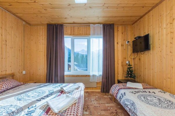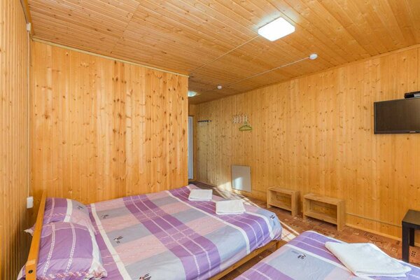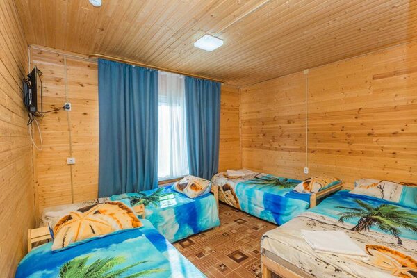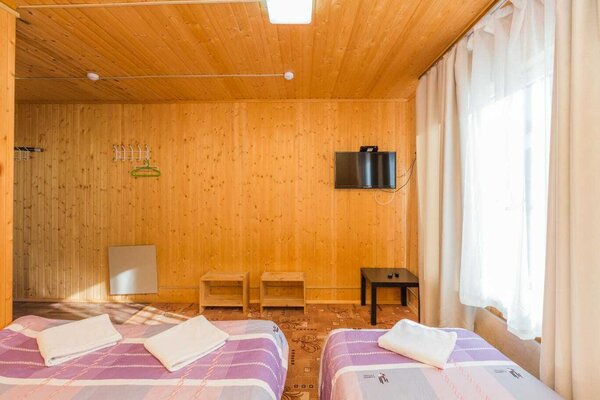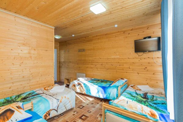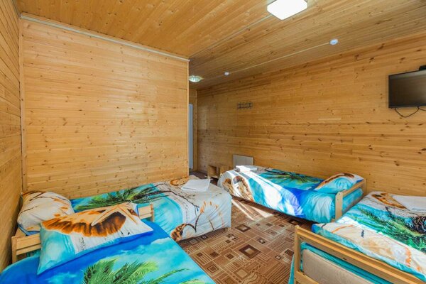 К услугам гостей предлагаются уютные номера-студии, рассчитанные на комфортное размещение 3 или 4 человек. Интерьеры номеров выполнены с использованием натуральной древесины, что создает теплую и расслабляющую атмосферу. В каждом номере предусмотрена удобная мебель для отдыха, телевизор и собственный санузел с душевой кабиной.