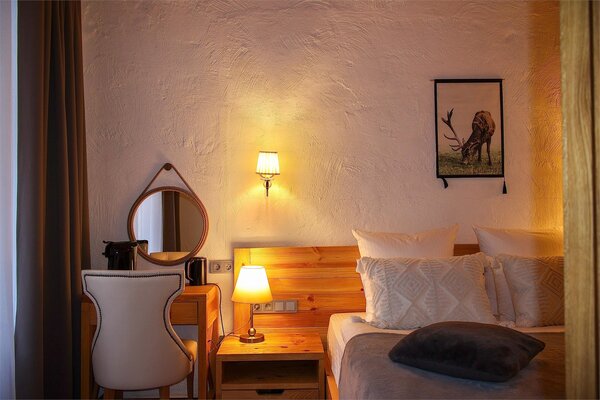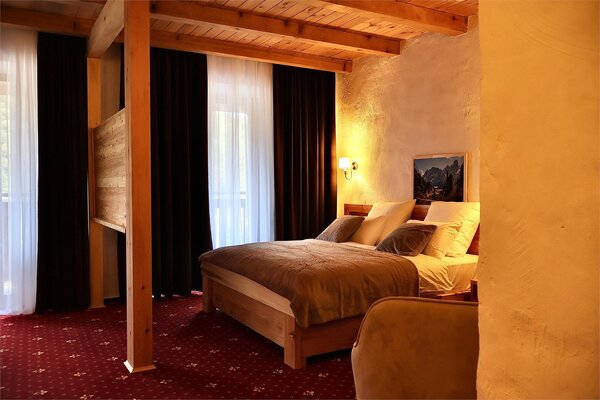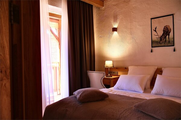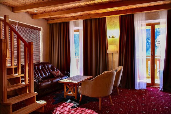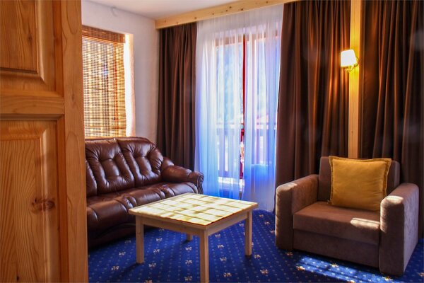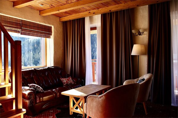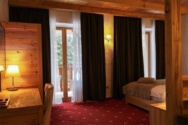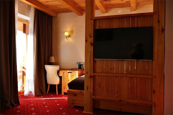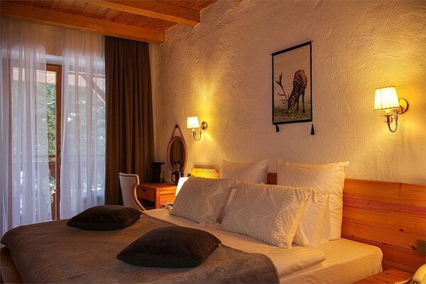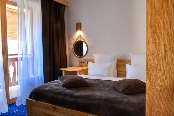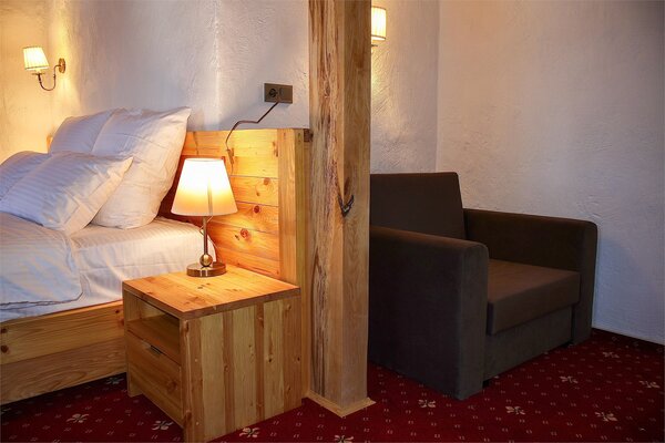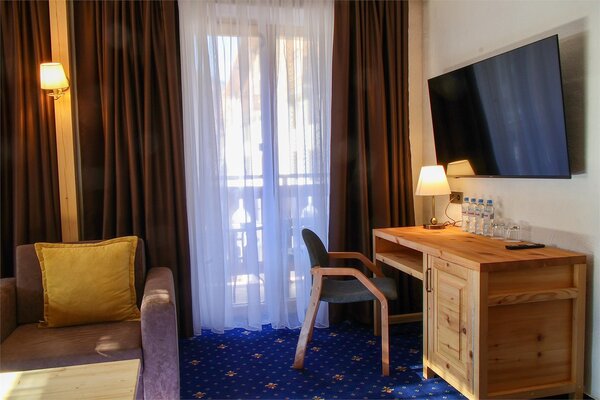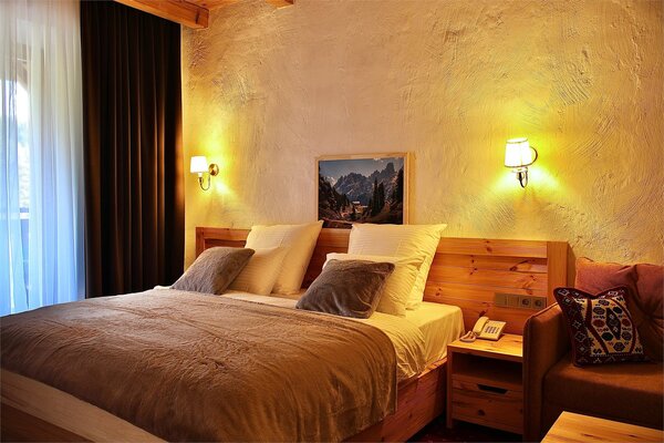 Погрузитесь в атмосферу тепла и уюта: наш отель выполнен в элегантном альпийском стиле с использованием исключительно натуральных материалов, создающих ощущение домашнего комфорта.