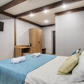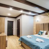 Отель «Royal Архыз» – это просторный отель в центре пос. Архыз в нескольких минутах ходьбы от центральной площади, кафе и магазинов. Расположен в потрясающем и тихом районе: в непосредственной близости от горной реки и сосновой рощи. Расстояние до горнолыжного курорта Романтик – 10 км или 8 мин. Из окон открывается чудесный вид на горы Архыза. Место, пропитанное атмосферой горнолыжного курорта – идеальный вариант для индивидуальных путешественников, семейных пар и небольших компаний.