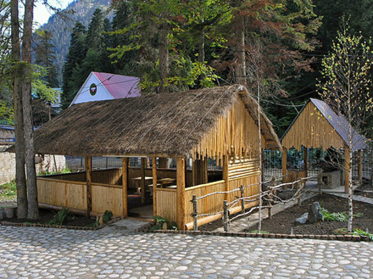 На территории отеля есть мангалы, так что вы можете провести время в кругу друзей у огня. «Снежный барс – Домбай» – это кавказское гостеприимство и качественный сервис круглый год.