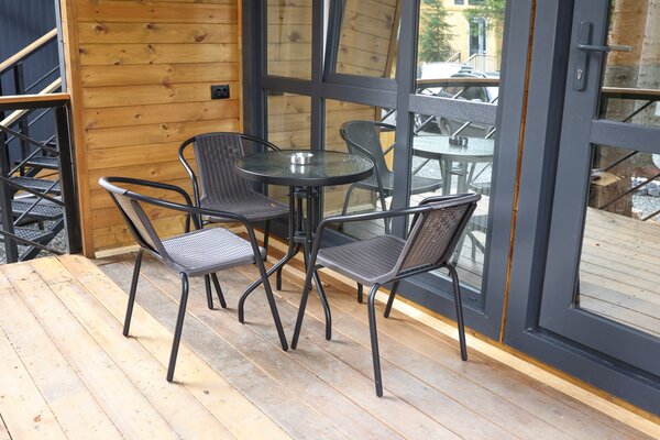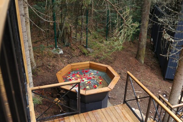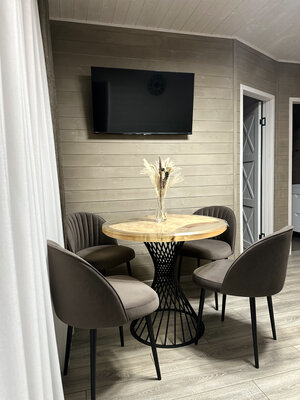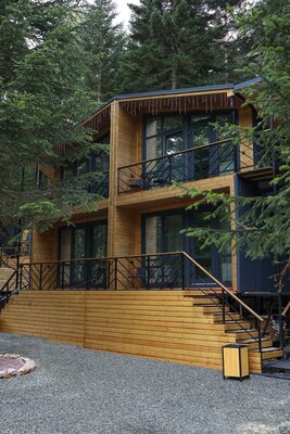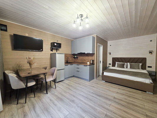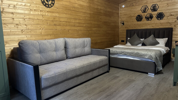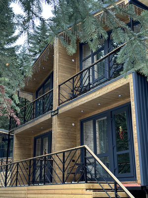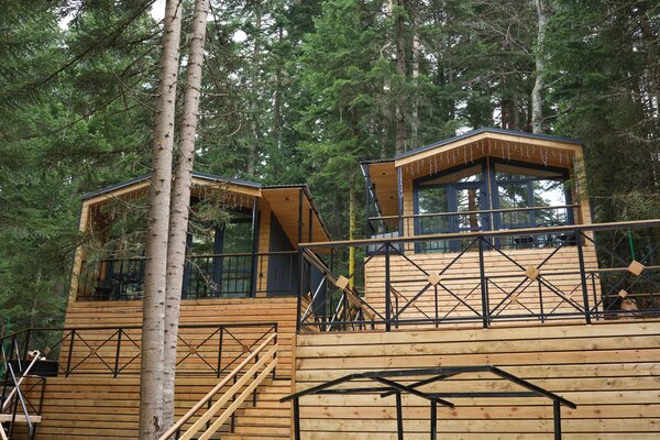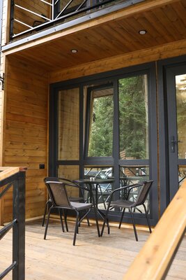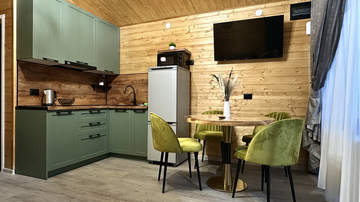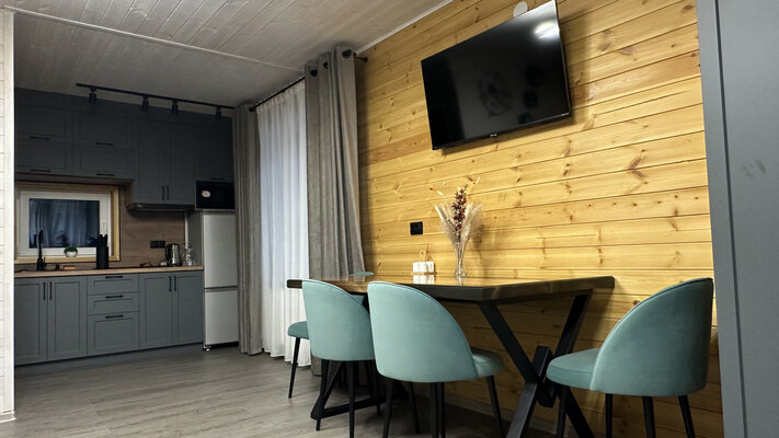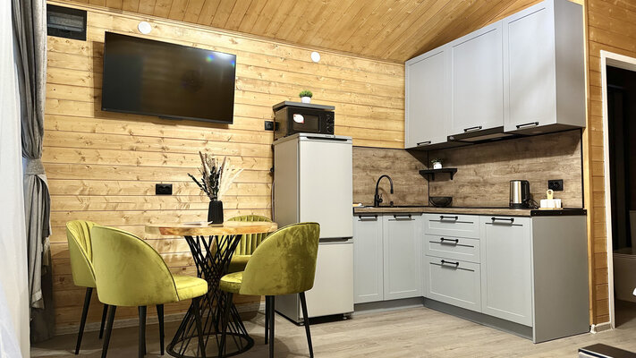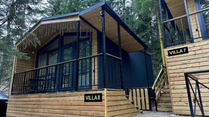 К вашим услугам шесть комфортабельных домиков с панорамным видом на горы и лес. Каждый домик оборудован всем необходимым для полноценного отдыха: современной кухней с техникой и посудой, удобными кроватями с белоснежным бельем, просторной ванной комнатой с душевой кабиной, Smart-TV, высокоскоростным Wi-Fi и уютной террасой с садовой мебелью.