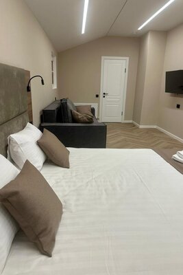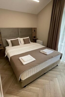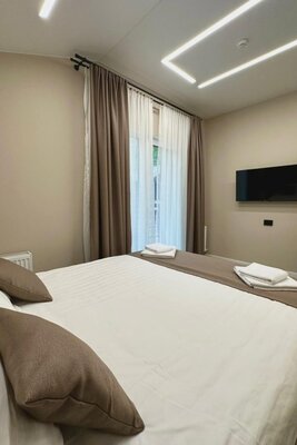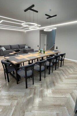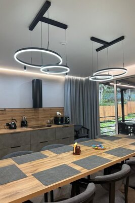 «Вилла Елена» — это уютный гостевой дом, идеально подходящий для отдыха большой компанией. Просторная гостиная и кухня с большим обеденным столом у панорамных окон, открывающих захватывающий вид на горы, создают атмосферу домашнего комфорта. Четыре стильные спальни в стиле лофт, каждая с собственной ванной, гарантируют приватность и удобство. Две спальни имеют выход на балкон с живописным видом. В доме есть телевизор с доступом в интернет.