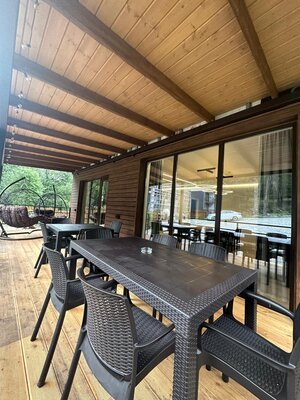 Днем вас ждут горные походы, катание на лыжах, изумительные водопады и озера. Вечером – расслабляющая терраса для отдыха с чаем в кругу близких. Любители барбекю оценят оборудованную мангальную зону с шампурами и казаном, где можно приготовить ужин под открытым небом в тёплой и дружеской атмосфере.