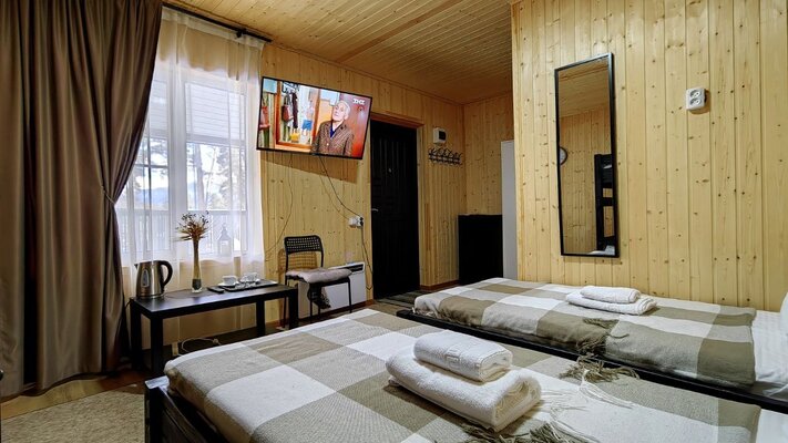 К вашим услугам уютные номера и коттеджи, беседка для отдыха, общая кухня с мангалом и бесплатный Wi-Fi.