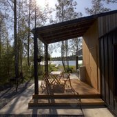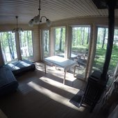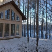 Участок расположен на берегу живописного озера Ахвенлампи в Карелии 15 м от линии воды в уединенном месте (до ближайших соседей 2 км). Все коттеджи расположены вдоль береговой линии и имеют изолированную зону отдыха. Расстояние между домами 40-50 метров.