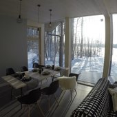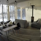 Новые коттеджи 2014 г постройки выполнены в скандинавском стиле и оборудованы сауной и всей необходимой техникой, и обставлены современной дизайнерской мебелью.