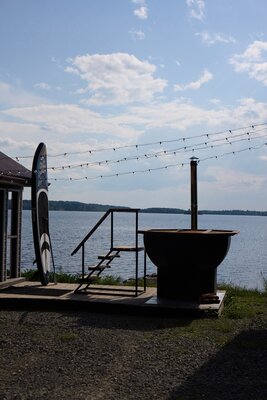 Вас ждет настоящая дровяная баня и сауна, а также сибирский чан, расположенные на берегу живописного озера Сямозеро.