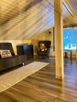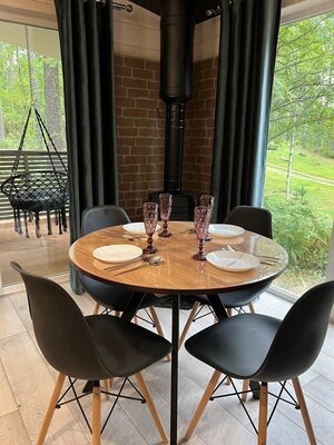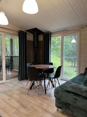 Дома на территории базы оснащены всеми необходимыми удобствами: комфортабельные кровати, телевизоры со спутниковыми каналами, Wi-Fi и уютные камины. Ванные комнаты оборудованы горячей водой и стандартным набором сантехники. Полотенца и постельное белье предоставляются за дополнительную плату.