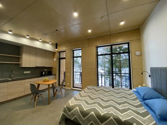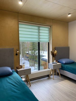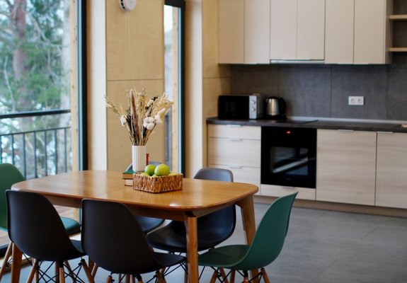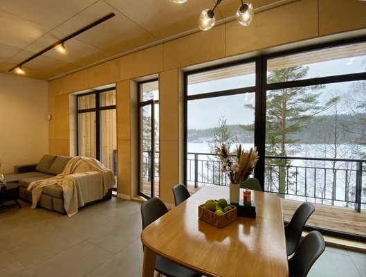 В каждом из коттеджей парк-отеля можно насладиться великолепным видом на залив и с комфортом разместиться со всеми удобствами.