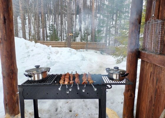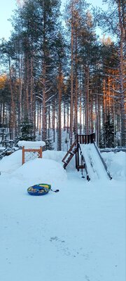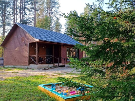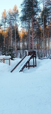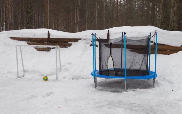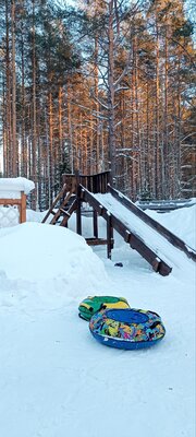 Для детей оборудована песочница, батут, футбольные ворота, бадминтон и горка с ватрушками, которая порадует как маленьких гостей, так и взрослых. Гости могут взять напрокат велосипеды.