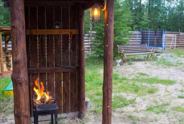 На закрытой и охраняемой территории гостевого дома есть парковка, мангальная зона с казаном, большие качели и вместительная беседка, где можно наслаждаться отдыхом в любое время.