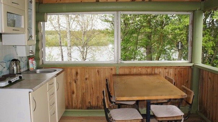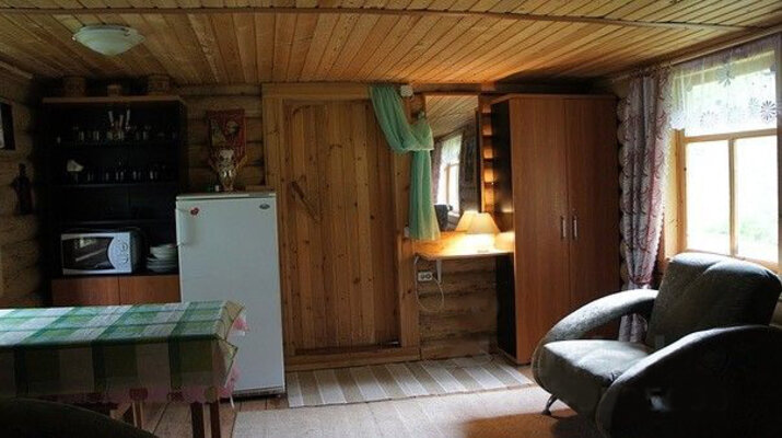 Уютный однокомнатный домик с холодильником, плитами, двумя двуспальными диванами и креслом-кроватью. На территории – мангал, стабильный МТС/Мегафон, баня, уличный туалет и песчаный пляж. Организуем рыбалку с егерем на моторной лодке (до 2 человек). Рядом — Заповедник Кивач, Вулкан Гирвас, «Марциальные воды» и Успенская церковь.