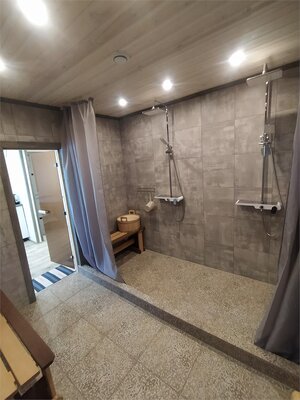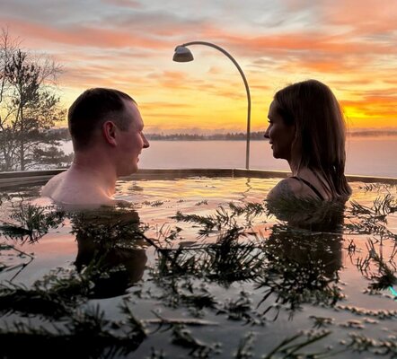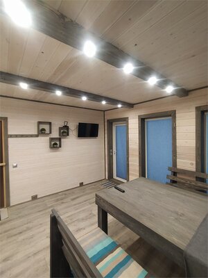 Шикарная баня на берегу. Большая терраса с креслами «кокон», большая комната отдыха, душ, парная с видом на озеро, после парилки можно окунуться в озеро, для этого оборудован специальный спуск на пирсе.