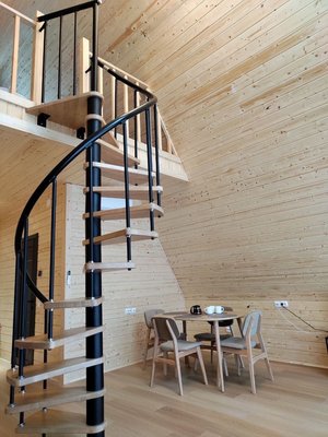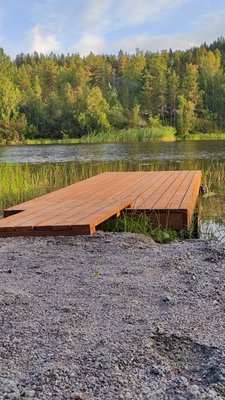 На территории имеются два современных и комфортабельных дома, выполненных с использованием дизайнерских концепций и с панорамным остеклением, позволяющим наслаждаться видом на Ладожские шхеры. Дома были построены в феврале 2023 года и располагаются всего в нескольких шагах от озера.