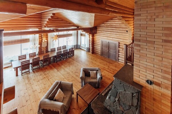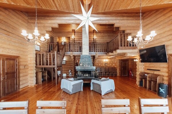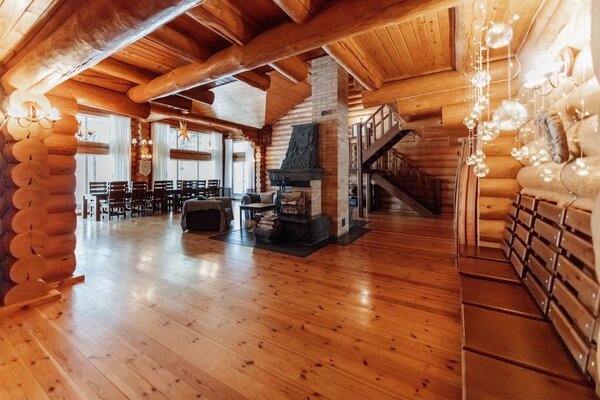 На территории дома имеются: большой каминный зал,