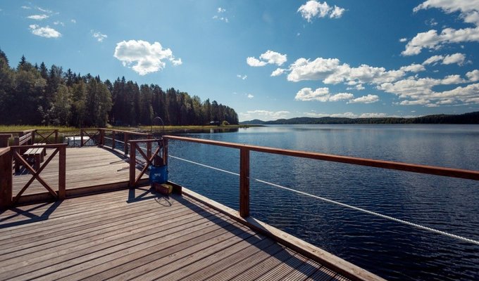Баня расположена на берегу озера. Вы сможете хорошенько отпариться и «похлестаться» березовым карельским веником. Рядом с баней есть беседка, где приятно попить чаю, сделать барбекю и отдохнуть между заходами в парилку.