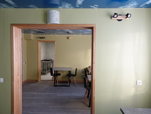 Проживание с собаками мелких пород, высота в холке которых не превышает 40 см, допускается за дополнительную плату в размере 500 ₽ за весь период пребывания гостя. Для собак с высотой в холке более 40 см установлена дополнительная плата в размере 1000 ₽ за весь срок проживания.